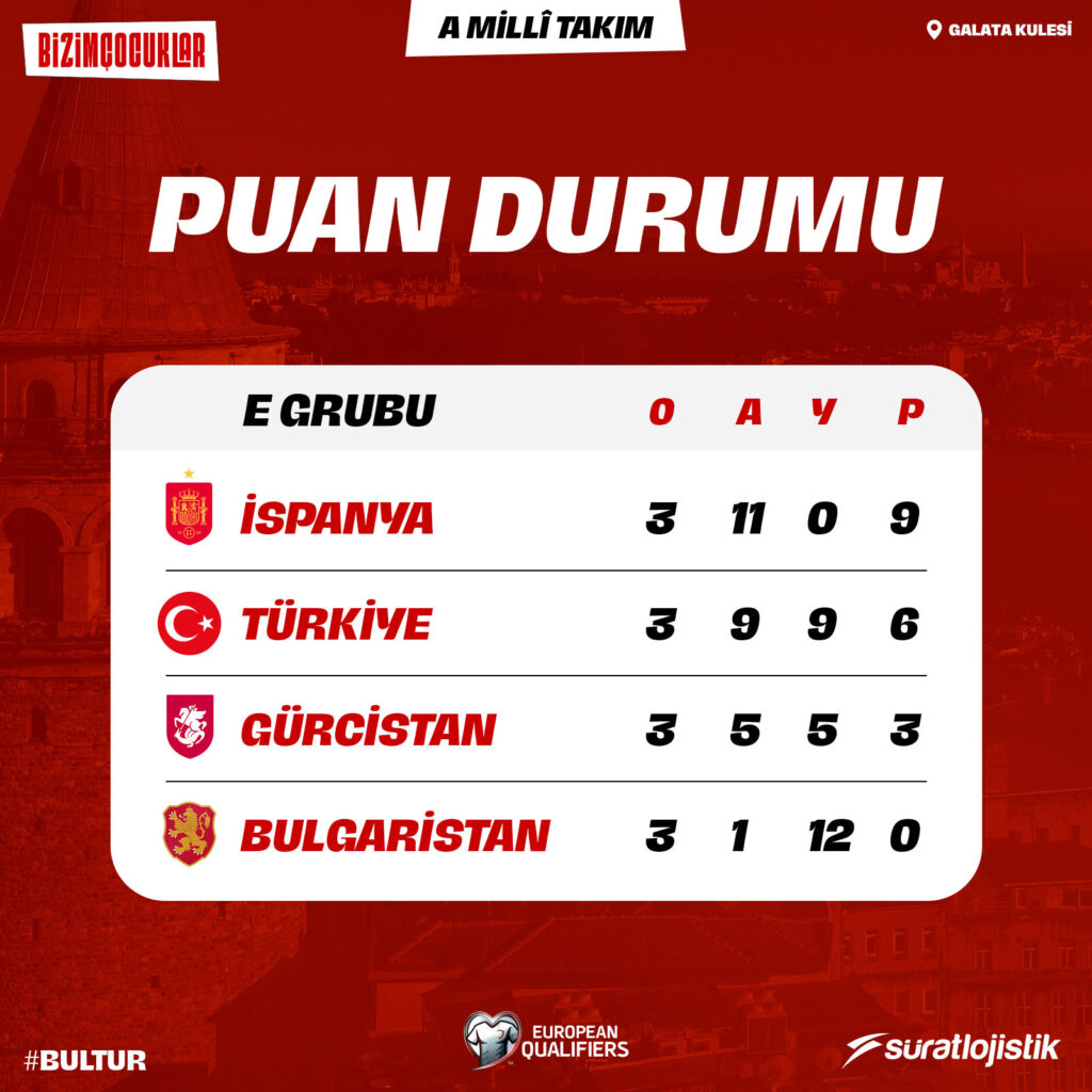 Bu sonuçla Türkiye, grupta puanını 6’ya yükselterek ikinci sıraya yerleşti. Bulgaristan ise puansız kaldı. A Millî Takım, bir sonraki maçını 14 Ekim’de Kocaeli’de Gürcistan karşısında oynayacak.